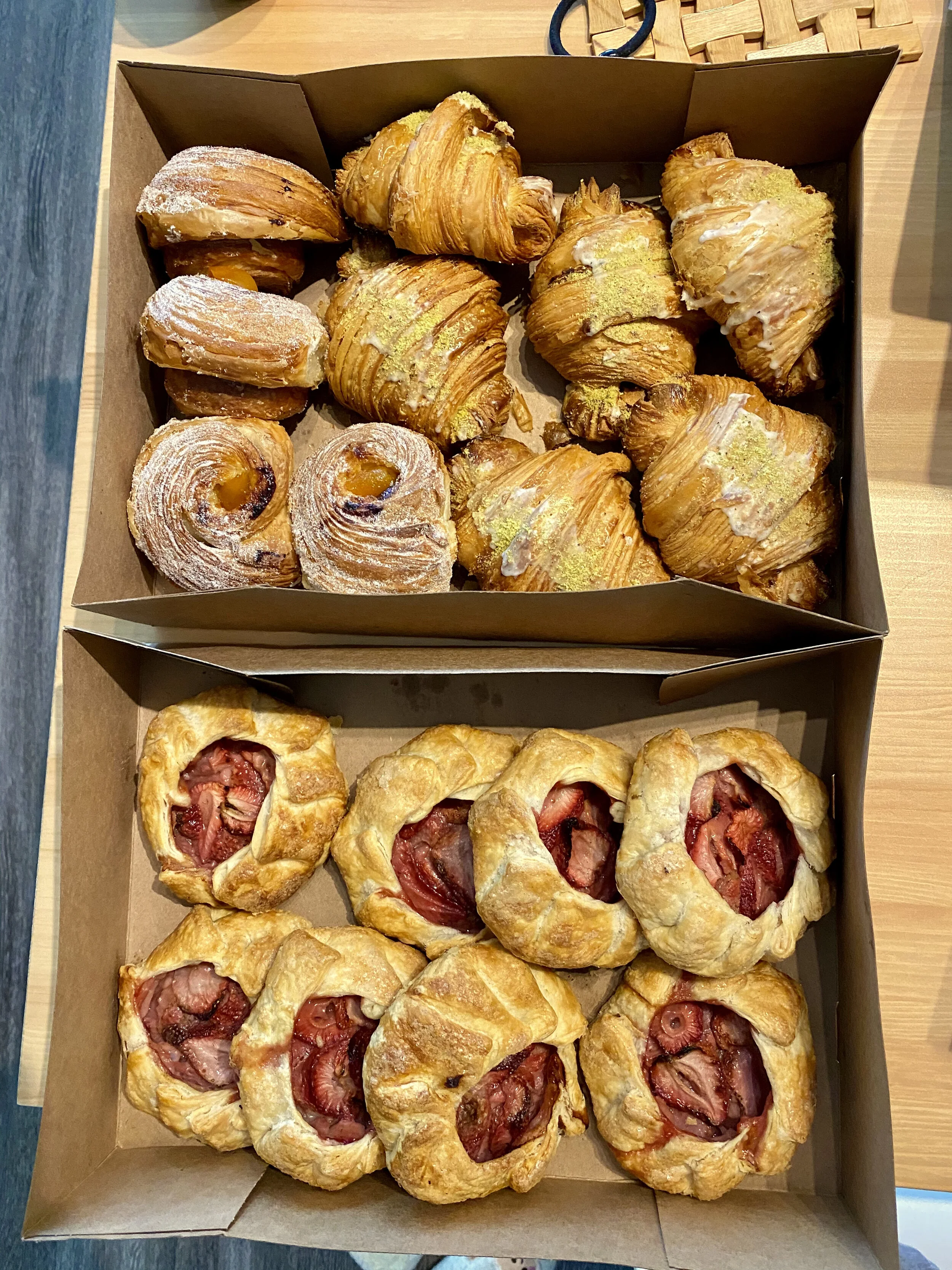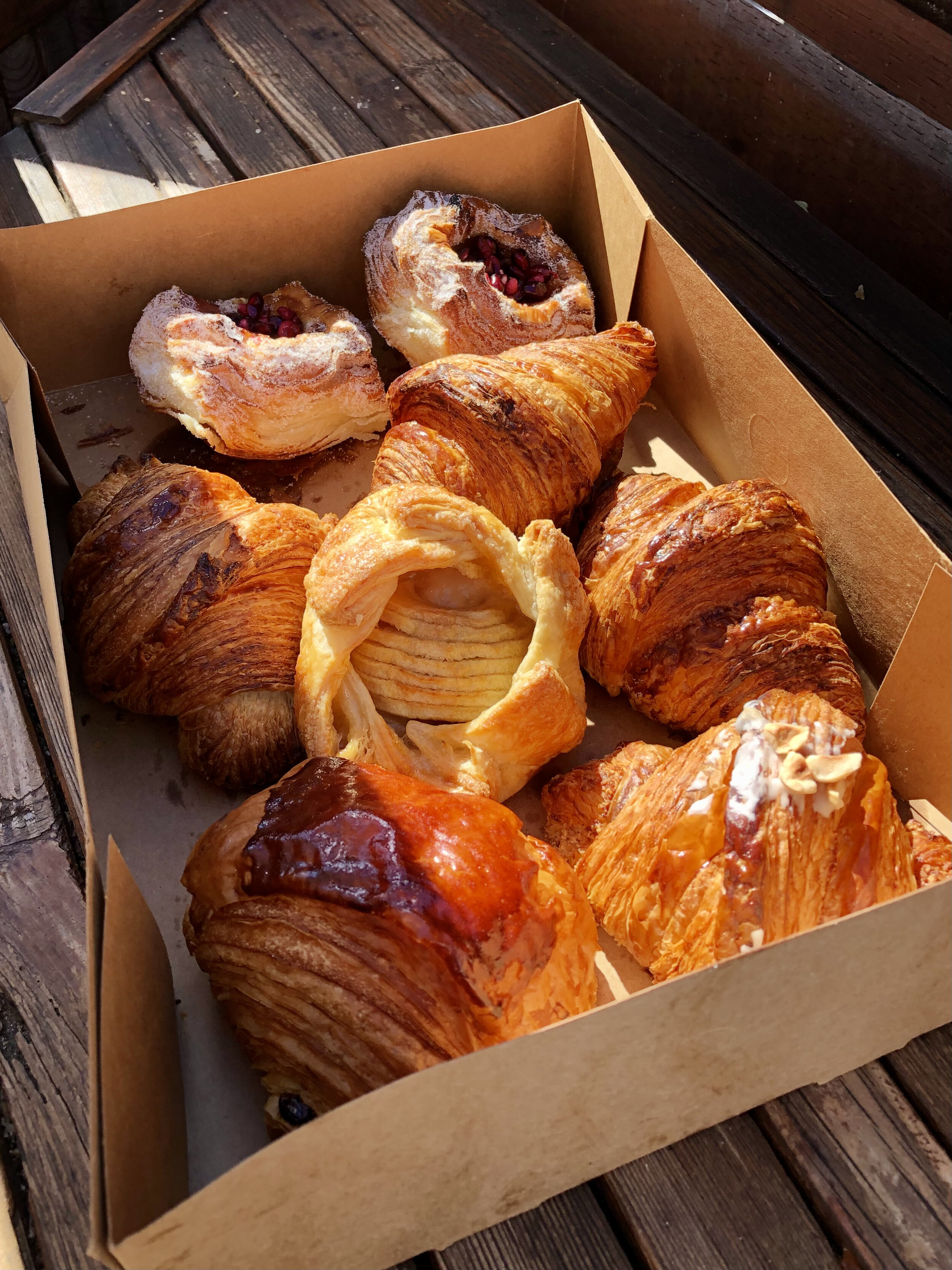 If I buy pastries over the amount I eat on that day, I store the pastries individually in Zip-Lok bags, then put them into a freezer. In the morning, I heat the pastries in the oven for 10 minutes, and they’re ready to be enjoyed. My record is buying 18 pastries once, for only myself. That’s during the pandemic, and I wanted to avoid going out as frequently as usual. The pastries are still pretty delicious after being stored in the freezer for 3 weeks and reheated properly.